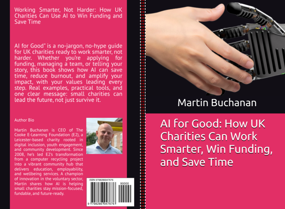 Drawing on real-life examples from right here in Beaumont Leys, the book shares how E2 quietly introduced AI into everyday charity operations, from bid writing and youth work rotas to team support and communications.