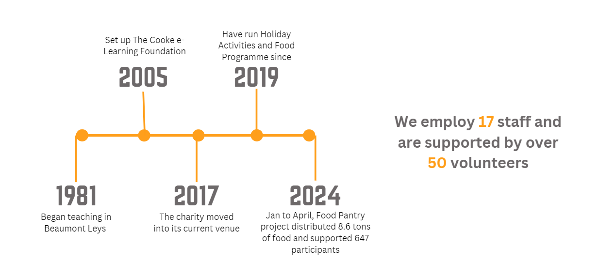 Thanks to grants from various sources, including the National Lottery, E2 offers numerous activities for the Beaumont Leys community. These include a weekly food pantry, sporting and creative activities for children and young people, school holiday clubs, and a recently established Urban Garden Project. All of this has been achieved through the hard work and dedication of the staff and volunteers. Peter extends his thanks to everyone who has helped to make the charity such a success.