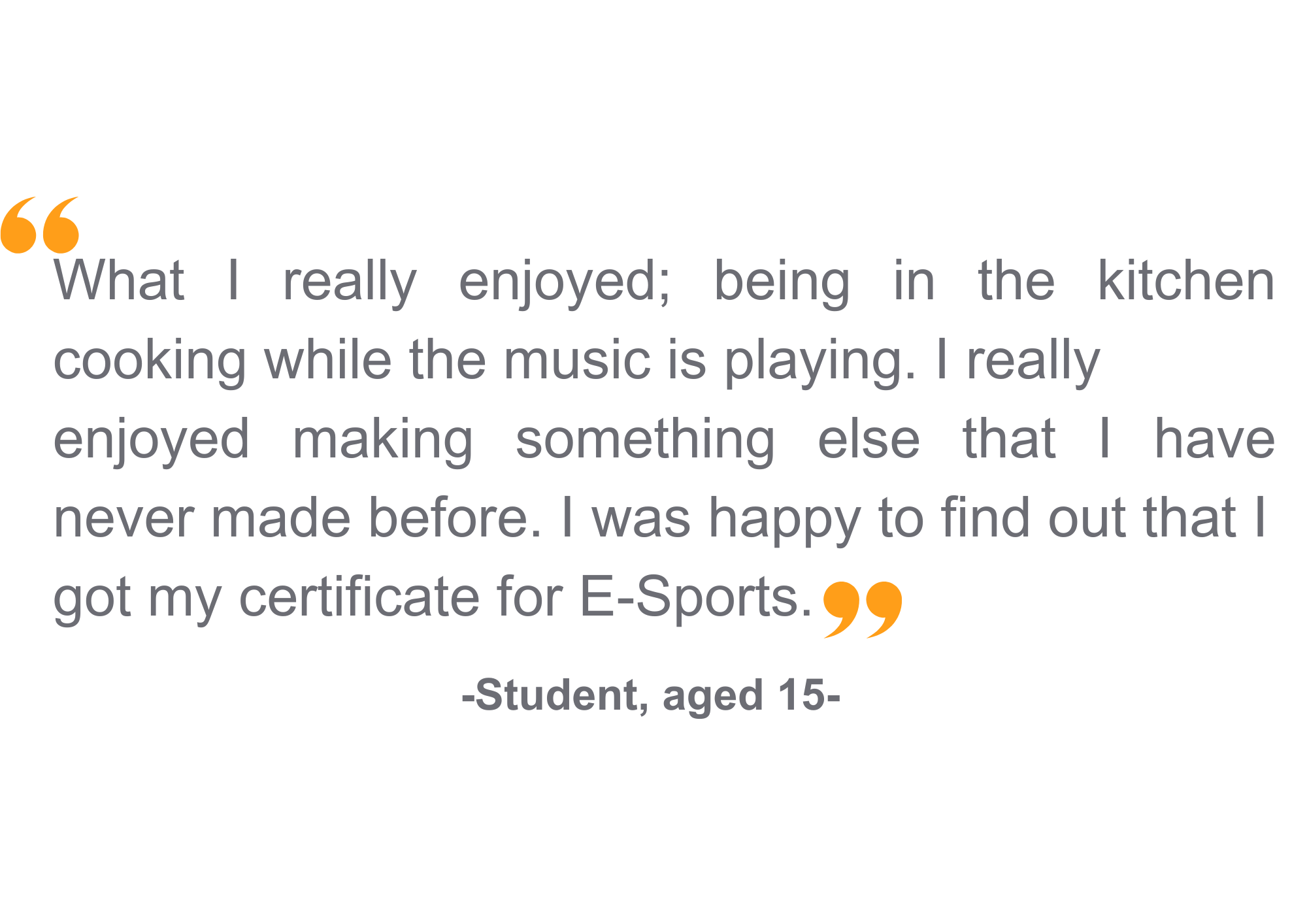 - “I'm really proud of myself because I have achieved my e-sports and catering”
