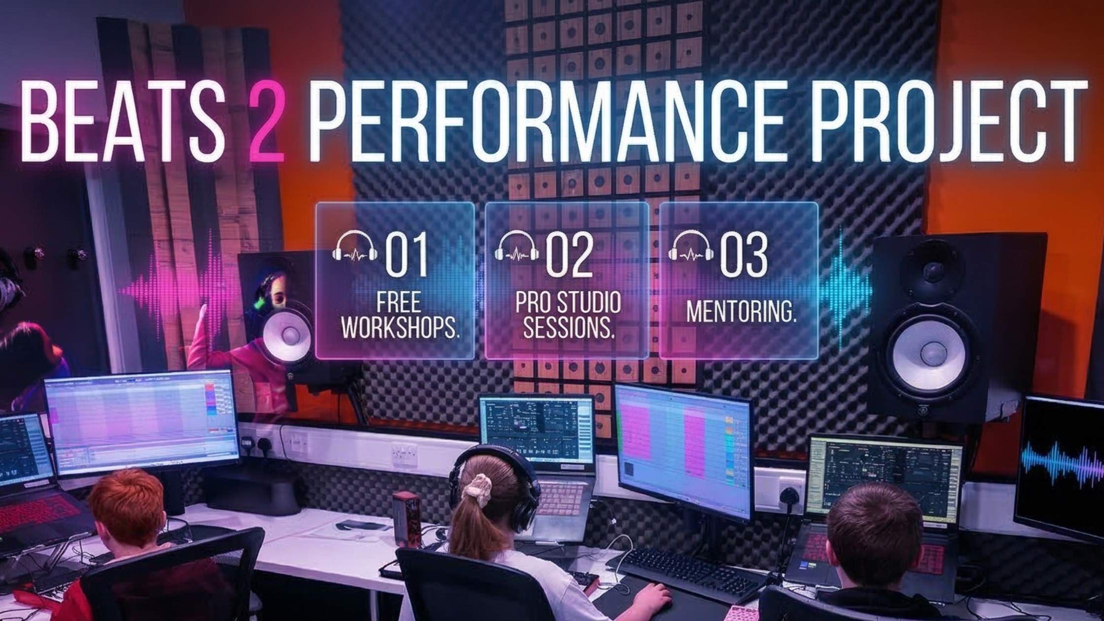 Beats 2 Performance is a free digital music project for young people aged 11 to 25. It gives participants the chance to explore music production, develop creative skills, receive mentoring, and build confidence in a supportive environment.